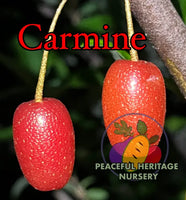 Have you heard of these unique easy to grow fruits? Trouble-free, abundant fruit, and lovely jasmine-scented blossoms. Goumi is native to the Far East, China and Japan, Goumi forms a medium size shrub growing to around 8 ft tall with attractive, silvery green foliage. It’s white flowers bloom in April-May and are very fragrant, smelling like jasmine, and loved by honeybees making it great bee forage. The juicy, scarlet-red fruit is speckled with silver and ripens around June. Aromatic with a flavor reminiscent of pie cherries and with a soft melting texture with edible soft pit, it's good eaten fresh and also makes tasty preserves. Goumi berry bushes tolerate partial shade and also fix nitrogen, benefiting other trees and shrubs nearby. We've come to appreciate this unique fruiting shrub more and more. 'Carmine' Goumi produces a long, exceptionally large (about 1/2 inch) and flavorful fruit in large quantities. The fruit ripens here in Kentucky around May 20th - June 5th